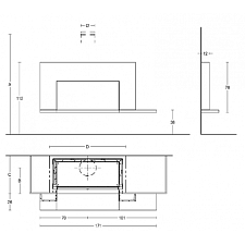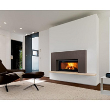Компания Piazzetta производит также камины ультрасовременных форм, есть и минималистические модели: например, встроенные камины, которые представляют собой ровное прямоугольное стекло в стене, нише или колонне, за которым бьётся яркое пламя.