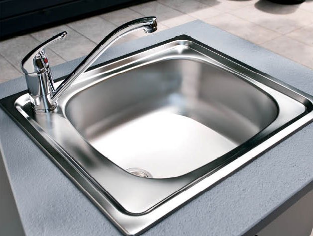 Модуль раковина с краном. Столешница со встроенной раковиной из нержавеющей стали и краном. С набором стальных дверец.