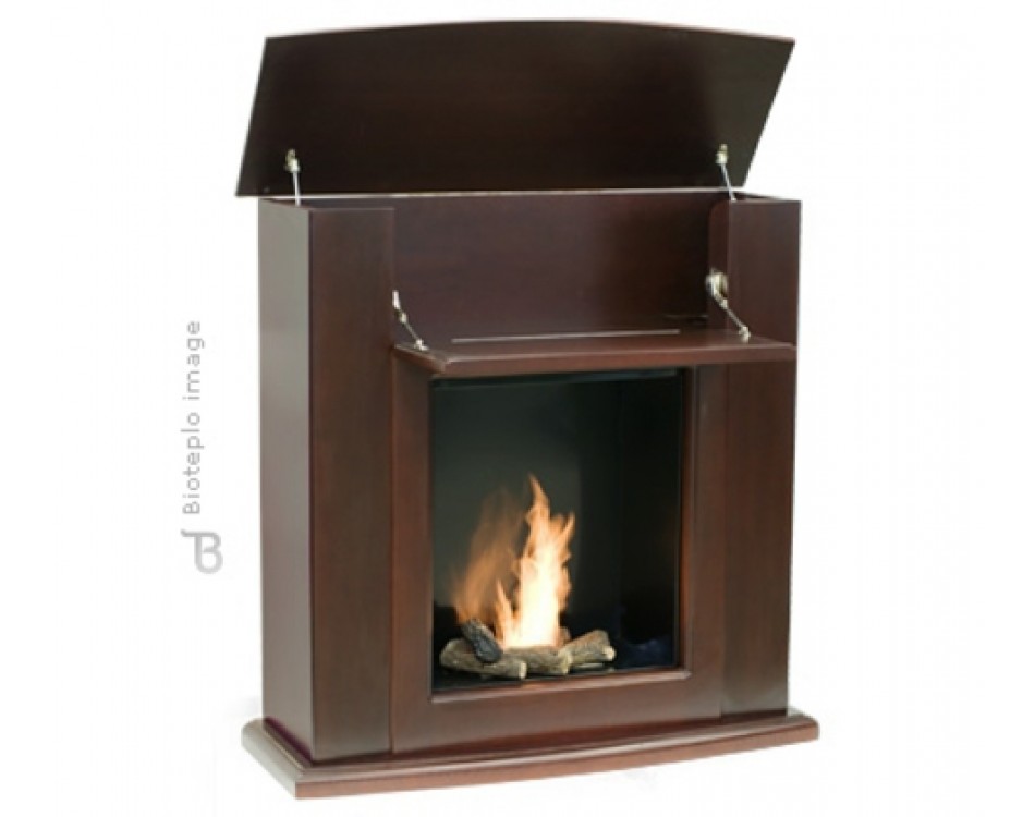 Портал модели выполнен из дубового массива. Барное отделение расположено под откидной крышкой, в верхней части биокамина и рассчитано на 4 винные бутылки и несколько аксессуаров. Фронтальная часть портала также откидная и при открытии образует мини-столик.