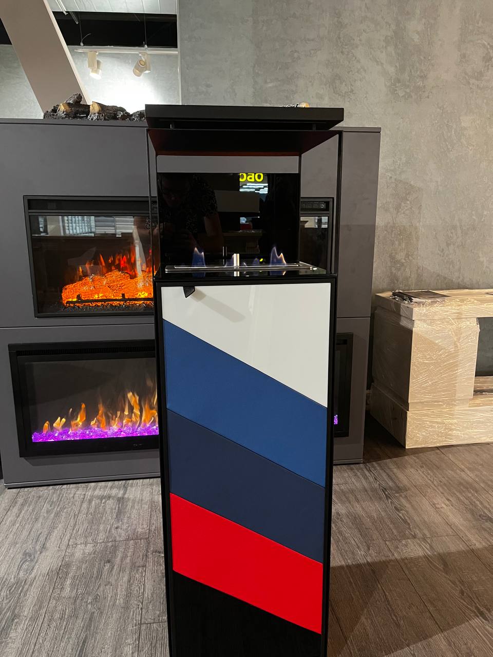Уникальный биокамин – Firezo M Performance отражает стиль и дизайн немецкого автомобиля. Металлический каркас и стенки из дерева гармонично сочетаются с накладками из эко кожи и алькантары. Также внутри камина мы сделали мини бар – это точно удивит!