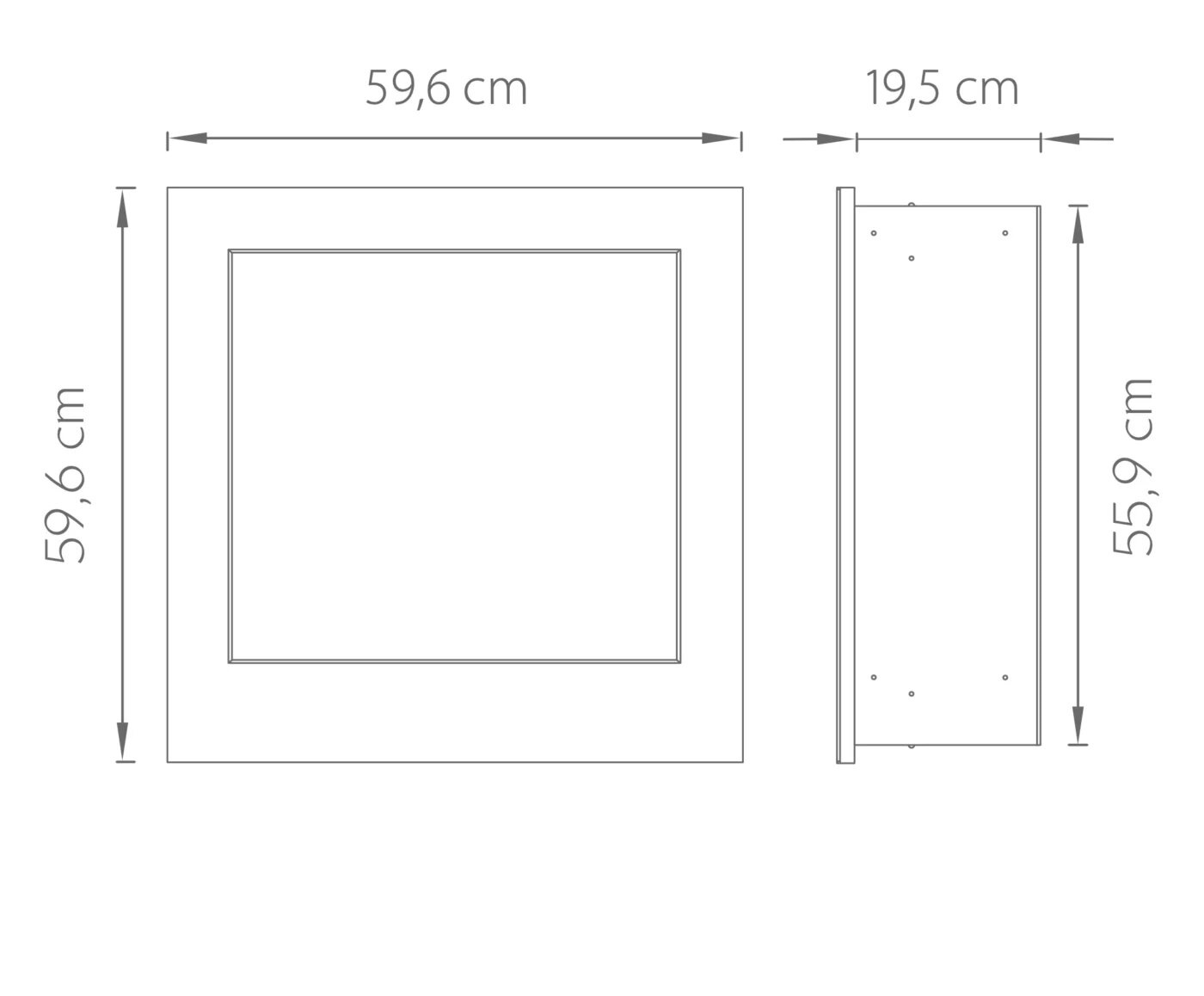 - Габаритные размеры ШxГxВ, (мм): 596x195x596