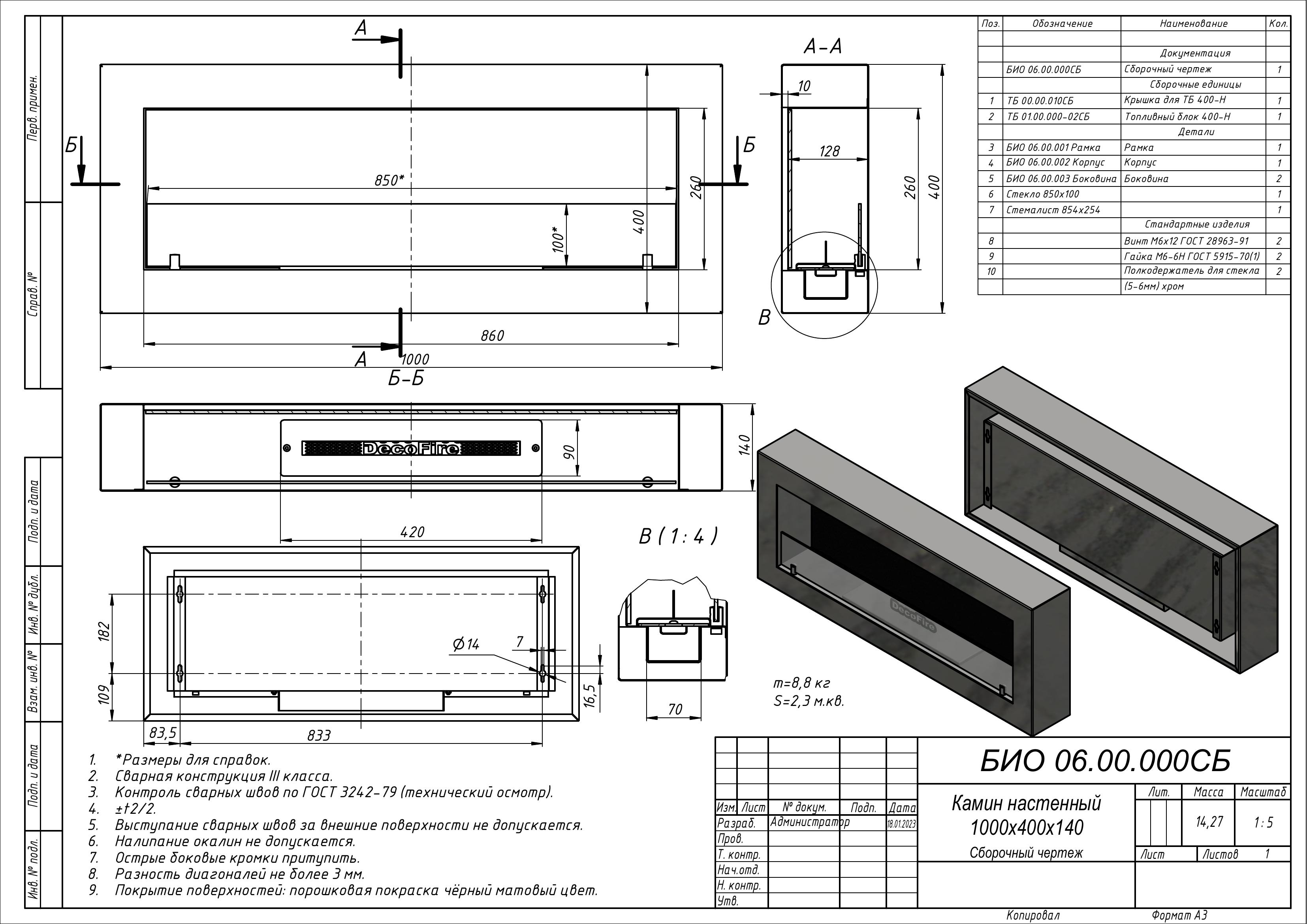 - Габаритные размеры ШxГxВ, (мм): 1000x140x400