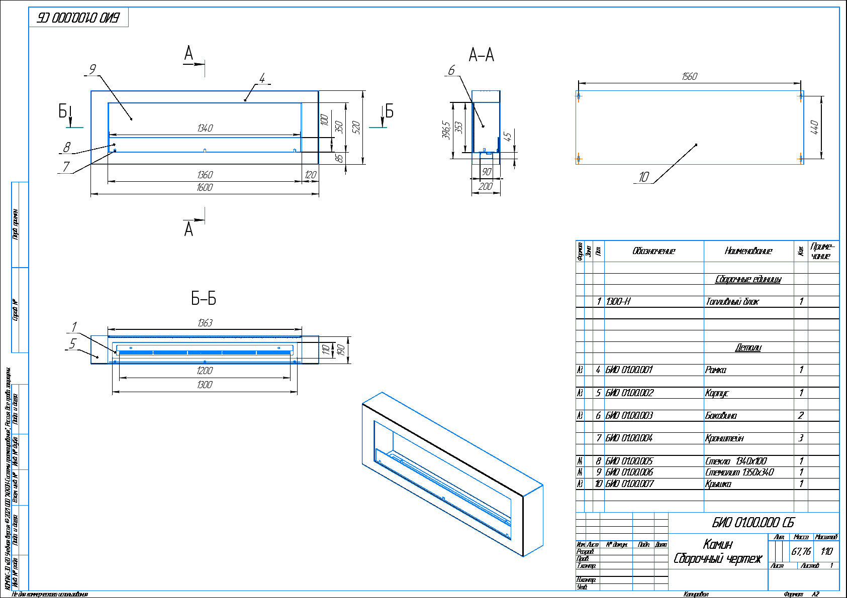 - Базовые размеры камина: 1600x200x500 мм