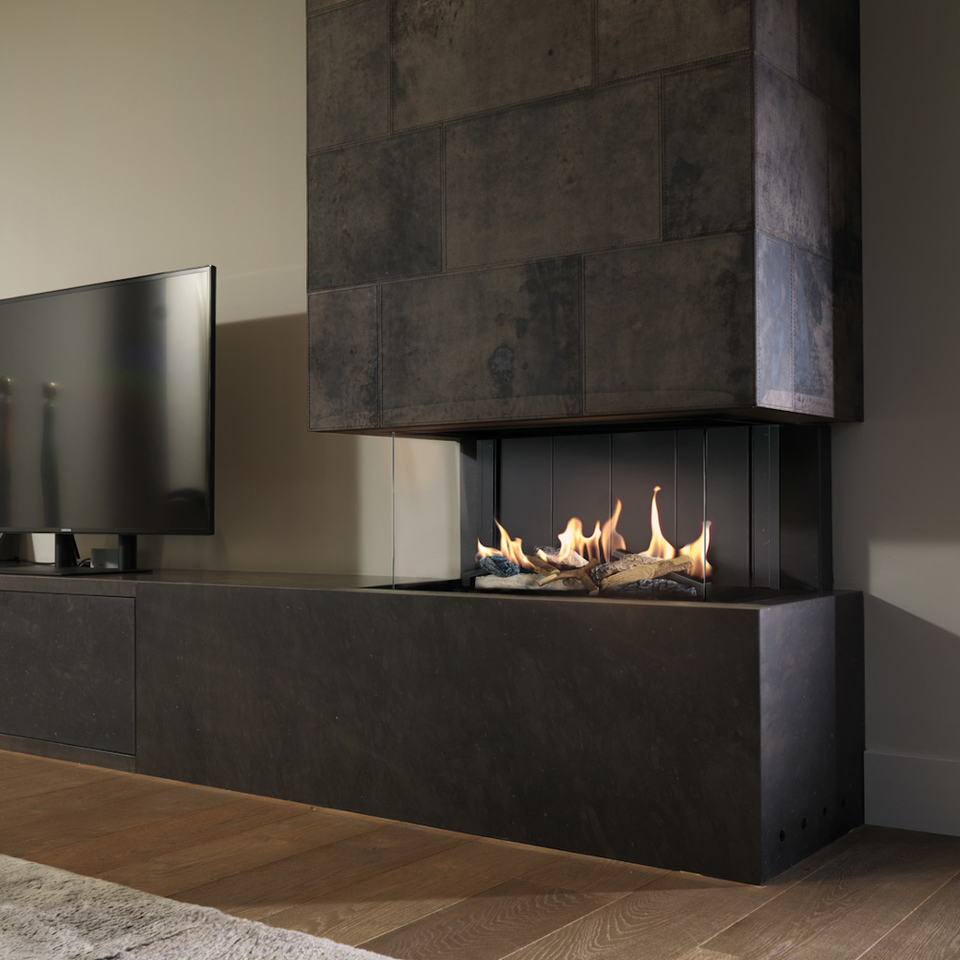 • Беспрепятственное созерцание огня благодаря невидимой рамке фасада и минимальному количеству видимых стальных элементов.