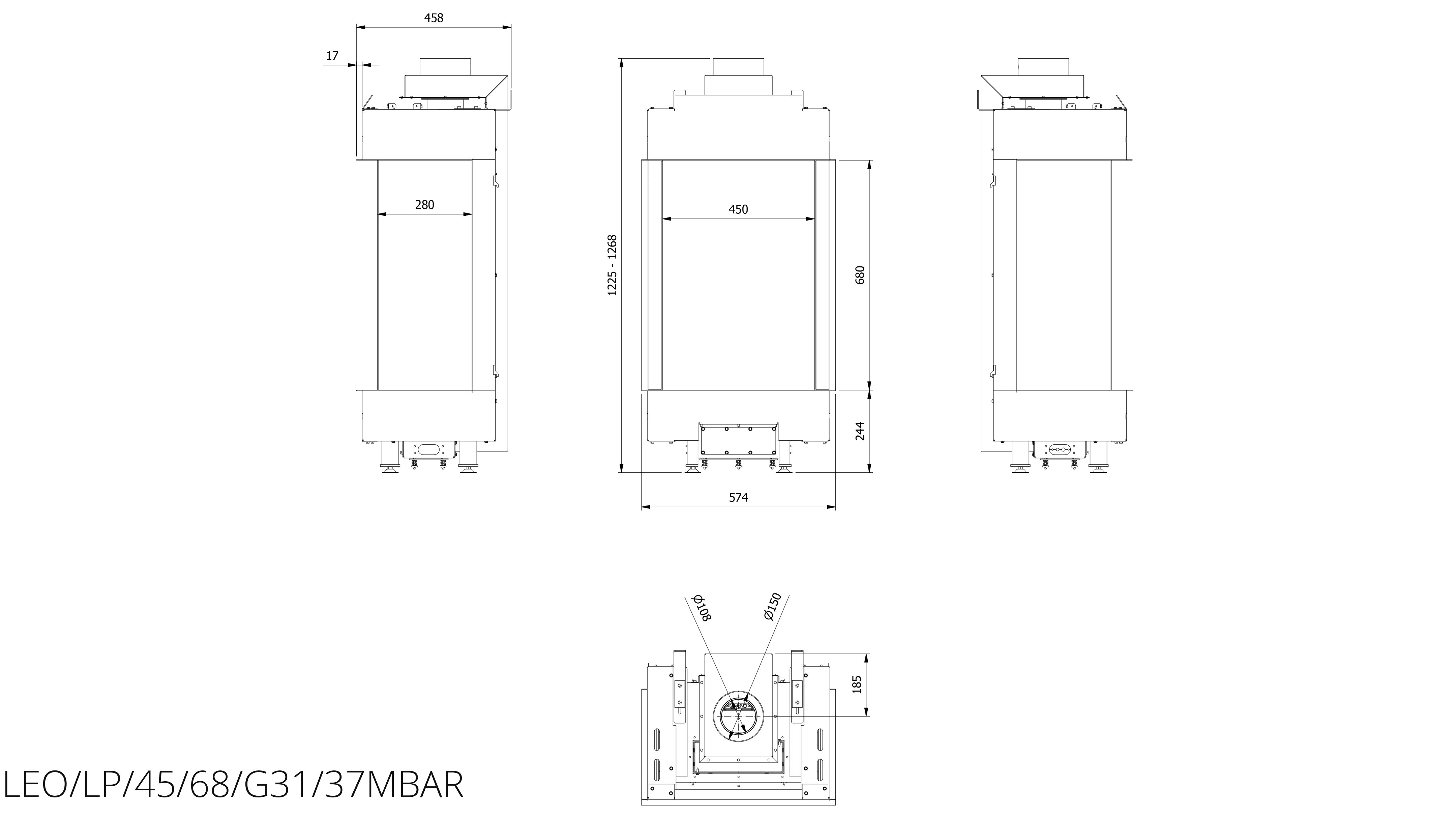 Газовый камин Kratki LEO/LP/45/68/G31/37MBAR левая/правая баллонный газ