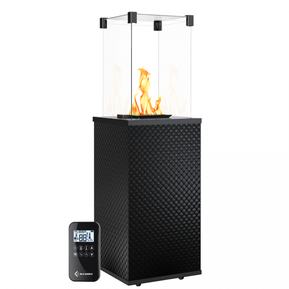Kratki Patio/G31/37MBAR/CZ/P стекло/черное тиснение пульт ДУ - это стильный газовый обогреватель, который гарантирует тепло и свет везде, где хотим создать исключительное и уютное настроение. Его уникальной особенностью является огонь, видимый с четырех сторон. Благодаря этому он является единственной в своем роде газовой, террасовой или садовой лампой.