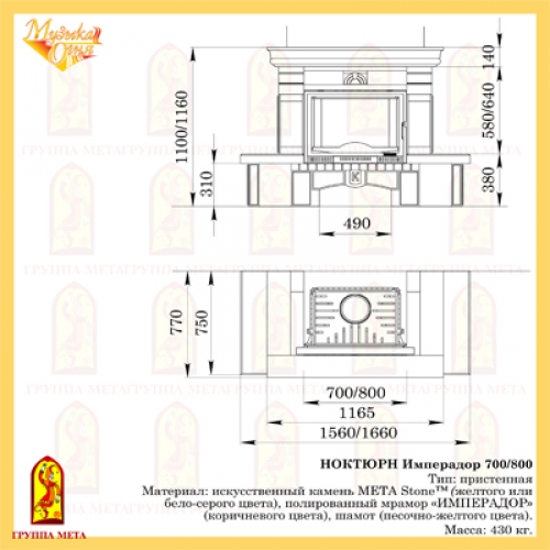 Каминная облицовка Мета Музыка Огня Ноктюрн Имперадор 800