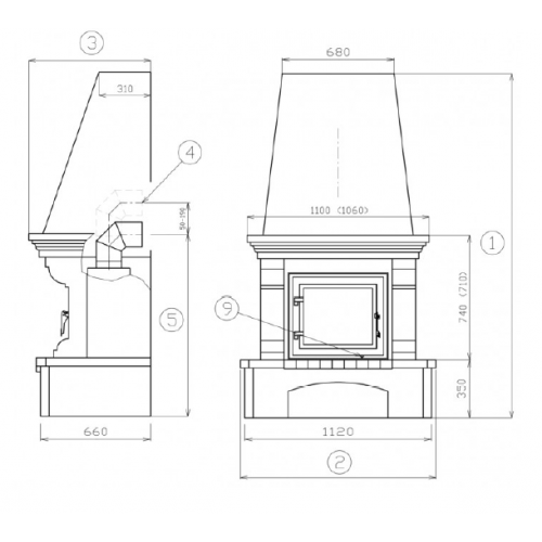 Изнутри топка камина защищена покрытием из пластин вермикулита, поэтому ей не опасно воздействие высоких температур. Мощность прибора варьирует от 4 до 10 кВт и изменяется при помощи ручного регулятора объема поступающего в топку воздуха. Выдвижной зольный ящик облегчает чистку прибора. Система дымоудаления присоединяется к специальному выводу, который находится на задней стенке камина.