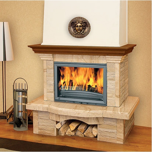 Погоду здесь делает полированный мрамор Dayno Reale. В отдельных дизайнерских эпизодах задействован и песчаник. Он придаёт облицовке свой неповторимый золотистый отсвет. Камин производитель выпускает в угловом и пристенном варианте, но оба функциональные и решают поставленные задачи эстетического плана.