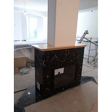 Полированные элементы – мрамор Rosso Verona, колотые элементы - Sunny Yellow. Балка из мрамора. Вариант прямой и угловой. Подходящие топки: шириной 700 мм с прямым стеклом.доступны опции: Балка из из дуба. Адаптация под топки 750 серии. Банкетка (слева/справа).