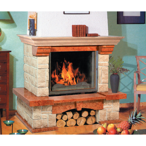 Каминная облицовка польского производства Bella Italia Akropol представлена колоритным сочетанием натурального камня - светлого колотого и насыщенного коричнево-красного полированного мрамора. Благодаря пристенному и угловому вариантам исполнения облицовка может гармонировать со всевозможными дизайнерскими фантазиями, воплощенными в интерьере кантри, и выделит оригинальные эстетические качества владельца дома.