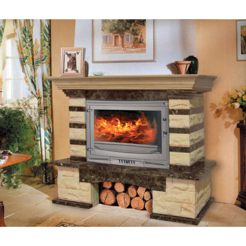 Bella Italia Alexandra относится к бюджетным каминным облицовкам, чьи визуальные качества не уступают более дорогими моделям других производителей. Изделие украшено изящной деревянной балкой и имеет незаменимый элемент каминов канри стиля – вместительный дровник. Облицовка структурирована желтым колотым песчаником, чередующимся уровнями из темного полированного мрамора, который добавляет ненавязчивую архаичность убранству комнаты.