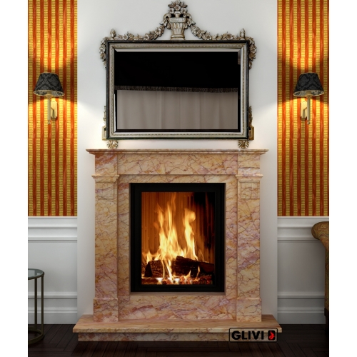 - Камин выполнен из полированного мрамора Crema Valencia.