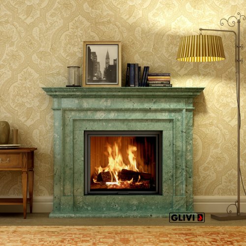 - Камин выполнен из полированного мрамора Verde Guatemala.