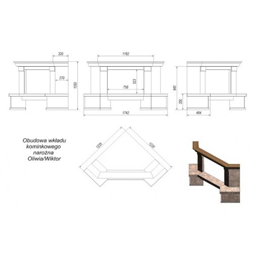 Облицовка Rimini угловая – покупая топки Oliwia, Wiktor, человек сталкивается с вопросом: как ее украсить? И тут на помощь приходит польская фирма Kratki с готовыми вариантами угловых  облицовок. Облицовка Rimini угловая  состоит из двух видов мрамора BRECCIA SARDA (Италия) и EMPERADOR BROWN (Испания), балка выполнена из сосны. Как правило, такие облицовки не требуют фундамента, просты в обслуживании и будут долгое время радовать и согревать. Хочется отметить - что эти облицовки подходят под топки Oliwia/PW, Wiktor/PW, Amelia/PW, Felix/PW с теплообменником (водяным контуром).