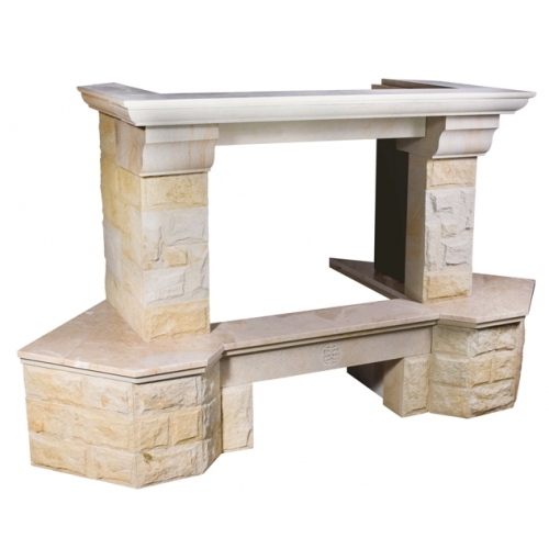 - Материал: колотый песчаник, золотистый цвет, полки - мрамор Best CreamПодходящие топки шириной „700 мм” с прямым стеклом
