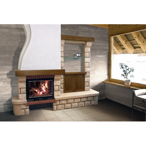 Облицовка камина Nevada – это строение из красного кирпича, ракушечника, также имеются детали из деревянного массива дуба – каминная полка, боковые дверки шкафчика. Грубый ракушечник в отделке камина дает максимум природности и эстетичности всему домашнему пространству. Nevada имеет фронтальное расположение, которое удобно для любых типов помещения. Широкая столешница из полированного ракушечника вносит в колорит камина особые ноты.