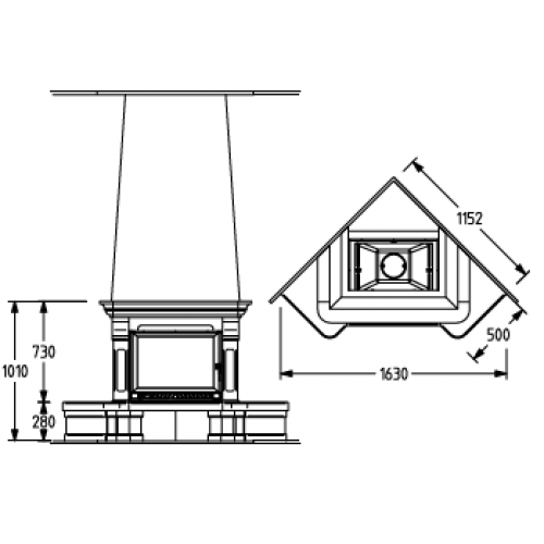 - Материалы : Золотисто-песочный Edelroc или белый Edelroc + топочная плита из кирпича