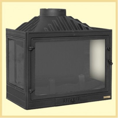 - большим плоским фронтальным стеклом, открывающимся в сторону и двумя боковыми стеклянными вставками;