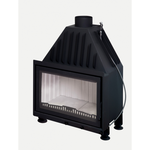 Топка изготовлена из стали высокого качества. Топочная камера футерована шамотом. Стекло прямое. Дверка открывается в бок. В топке предусмотрена встроенная шиберная заслонка. Высокий дымосборник обеспечивает дополнительный дожиг дымовых газов, что повышает КПД топки и теплоотдачу. За счет стеклокерамики и герметичности дверки обогрев происходит в три раза выше, чем в открытом очаге. С помощью системы «чистое стекло» стекло всегда остается чистым.