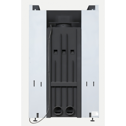 Цельносварной стальной корпус, футерованный литьевым шамотом. Регулируемая подача первичного воздуха в камеру сгорания "Printing" по периметру стекла.