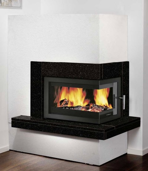 Топка остеклена с двух сторон. Вы можете смотреть на огонь с разных мест. Например, с кухни и гостиной. Такие стекла делаются всего в 2 странах: Германии и Японии. Оно выдерживает температуру до 750 градусов. Но если ударить кочергой, то может треснуть. Через стекло вы любуетесь огнем, следите за прогоранием дров и подкладкой новых.
