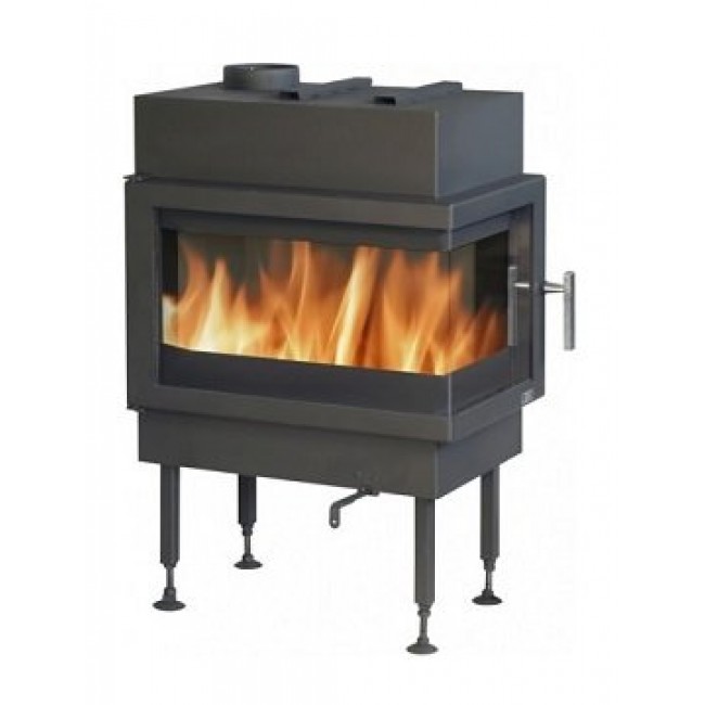 Шиберная заслонка перекрывает сечение дымохода. Так регулируется тяга в камине. Откройте шибер и вы увеличите тягу. Закройте и уменьшите тягу. В этой топке шиберная заслонка не встроена. Ее нужно купить в составе дымохода.