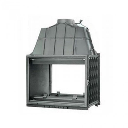 За счет большого количества чугунных ребер по периметру топки образуется максимальная площадь теплоотдачи, что повышает КПД топки и ее мощность. Большой вместительный зольник легко выдвигается при открывании дверки и не закрывает панорамы огня. В верхнем отделении топки происходит вторичный дожиг газов, что также повышает КПД топки.