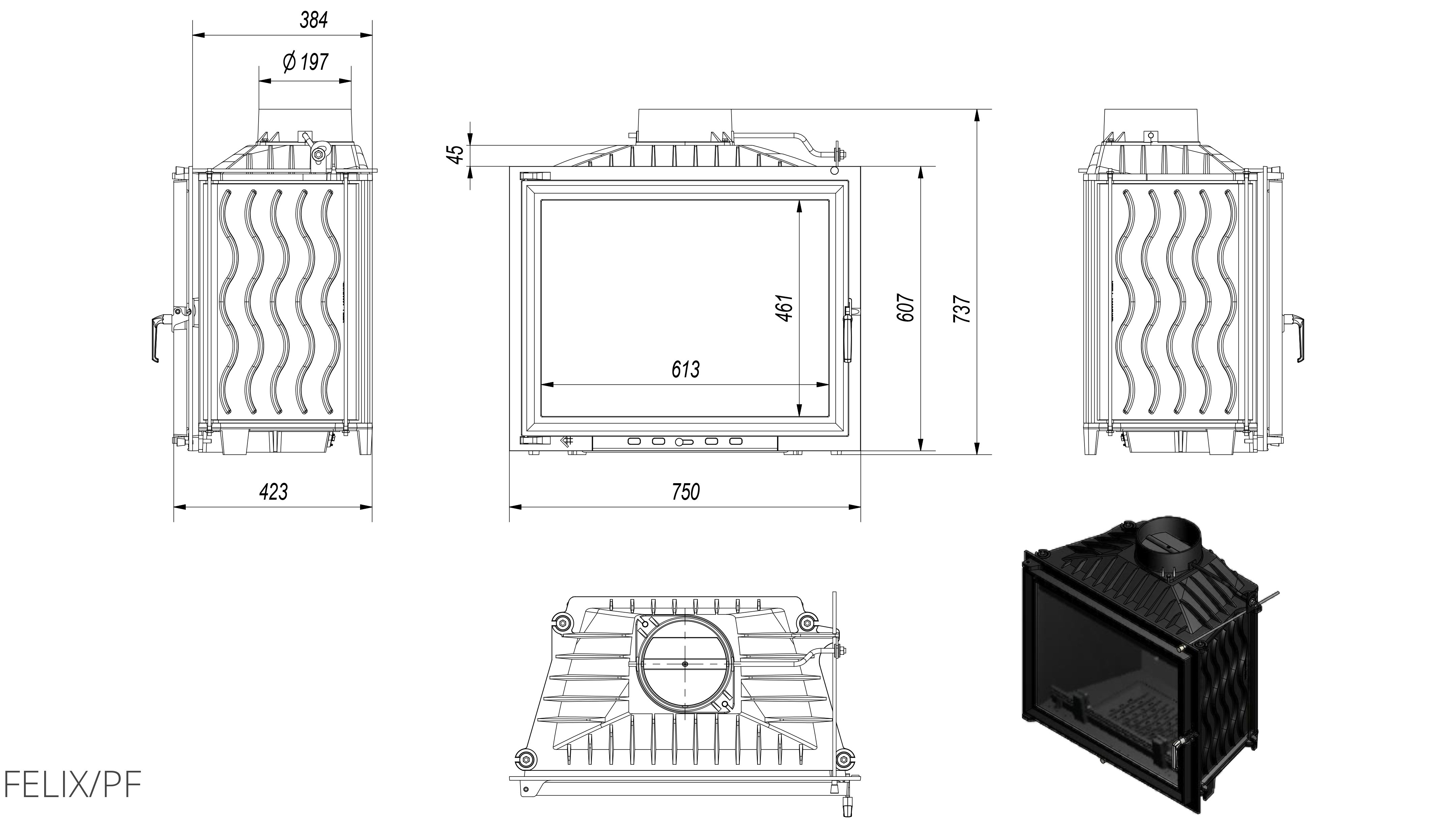 Встраиваемая топка Felix с большой камерой сгорания от польской компании Kratki. Классическая чугунная топка с большим прямым стеклом может быть встроена в любой камин. Благодаря сдержанному дизайну топка Felix впишется в любой интерьер, так как видимой частью является дверца с жаропрочным стеклом.