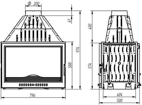 - Диаметр дымохода, мм: - 200