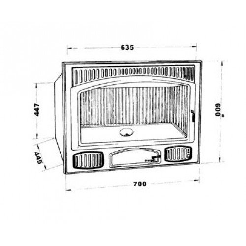 Высокопроизводительная компактная встраиваемая каминная топка C-4/70 из огнеупорного чугуна, с прямым фасадом и дверкой с керамическим стеклом. Оснащена системой самоочистки стекла, функцией дожига вторичных газов и термостатом безопасности.