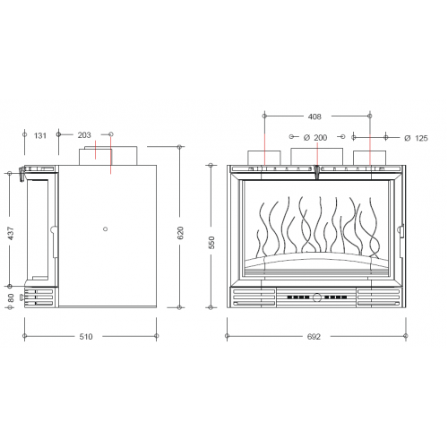 | Максимальная мощность с конвектором (30 минут горения) | 280 м2 / 840 м3 |