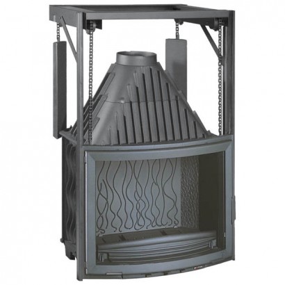 Новая модель каминной топки 800 Panoramique с радиусным стеклом и подъемной дверцей последней серии французских производителей изготовлена из прочного материала – чугуна. Обычно чугун рекомендуют покрывать краской любого цвета (цвет подбирается в зависимости от оттенков, преобладающих в интерьере вашей комнаты). Такая краска выполняет как защитную функцию, так и декоративную. Следует отметить, что краска должна быть специальной, способной выдерживать высокие температуры. В таком случае краска долгое время не будет портиться и терять свои возможности. Каминная топка данной модели достаточно компактная, поэтому она не займет много места в комнате. Чаще всего такие топки встраивают в стену, поэтому они вообще не занимают места. Вы можете наблюдать за работой камина через прозрачное стекло, которое располагается в центре топки. Оно также защищает ваш пол, ковер или же мебель от возможных повреждений. Ведь из камина могут исходить искры. Которые способны нанести вред любым предметам. Что касается качества стекла, то оно должно быть толстым, прочным и огнеупорным. В таком случае оно может находиться в тесном контакте с огнем. Чертеж Invicta Панорамик 800 контргруз Инструкция по монтажу и эксплуатации каминных топок INVICTA