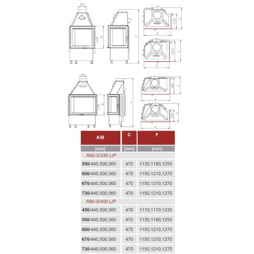 Каминная топка Kobok Corner 550 R90-S/330 L/P