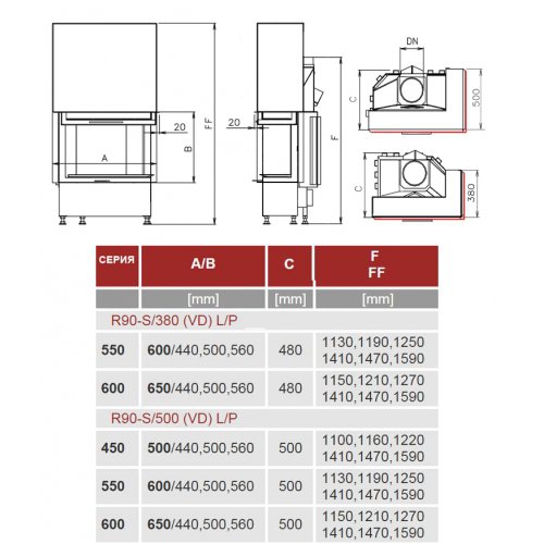 Каминная топка Kobok Corner 950 VD R90-S/380 L/P