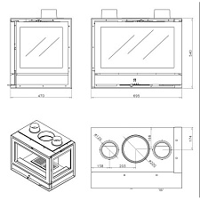 Топка K7 R (Liseo). Без дымосборника. С правым боковым стеклом.