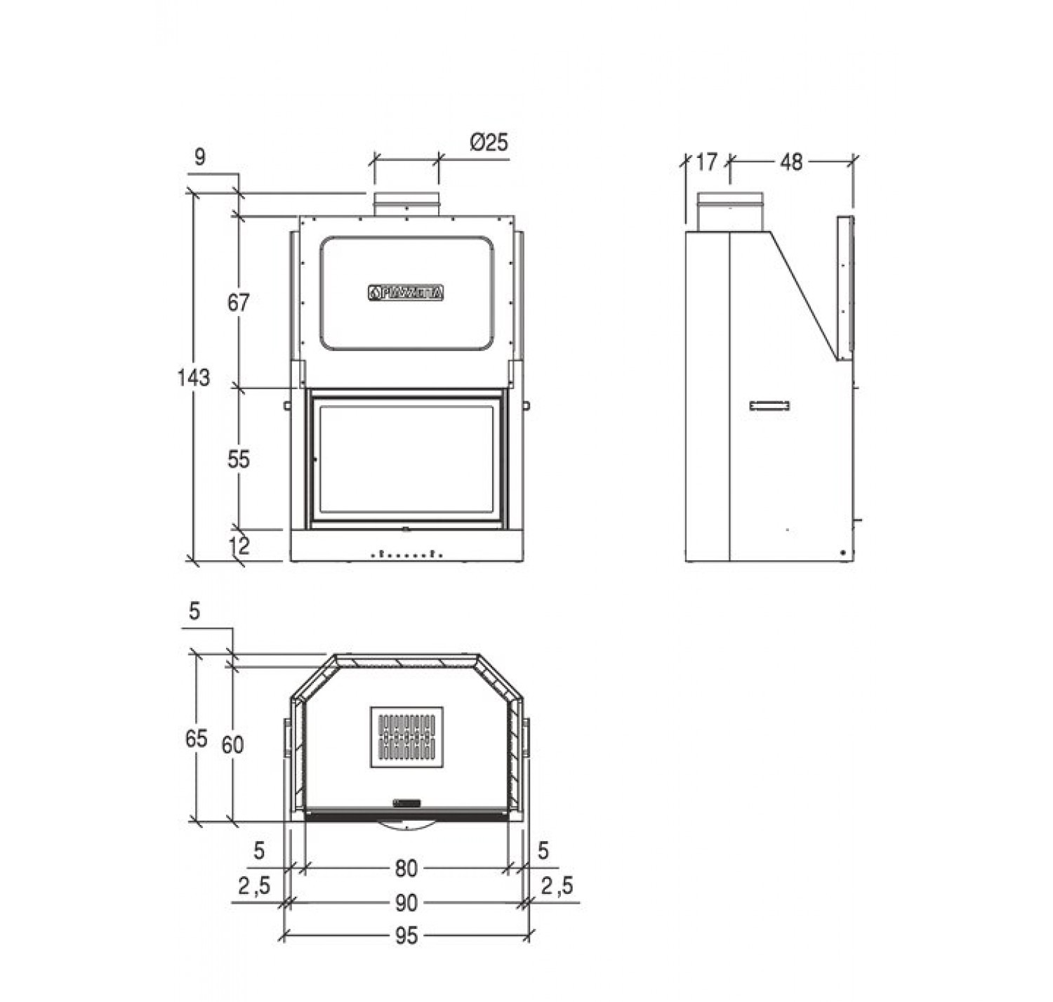 Каминная топка Piazzetta MА 261 SL произведена в Италии. Топка имеет прямое стекло.