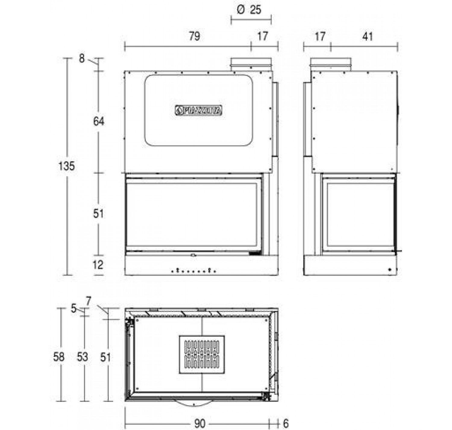 Каминная топка PIAZZETTA MA 283 SL DX произведена в Италии.