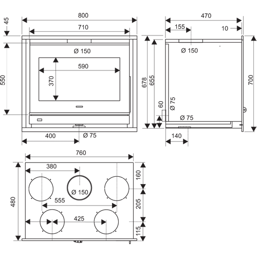 Каминная топка Richard Le Droff 800 FV T, с турбиной