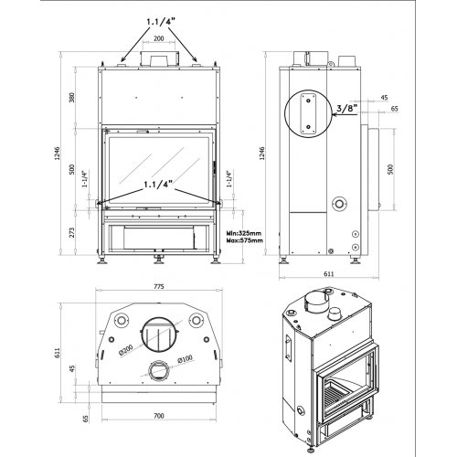 - Диаметр дымохода: 20 см