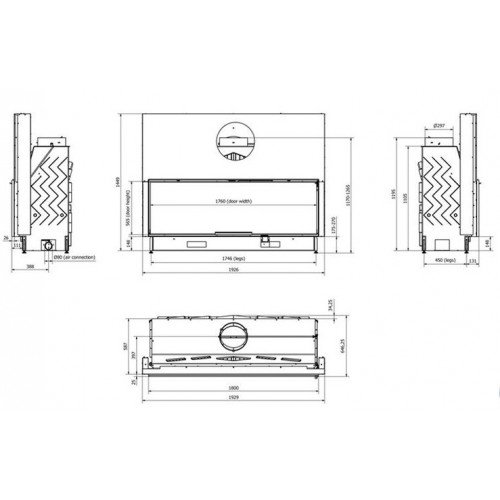 Корпус каминной топки выполнен из высокопрочной стали. Очаг облицован специальным жаропрочным материалом. Топка оборудована подъемным механизмом дверцы, что упрощает процесс закладки дров. Большое окно из жаропрочного стекла открывает чудесный вид на огонь. Система обдува воздуха по периметру дверки поддерживает стекло в безупречном чистом виде на протяжении всего топочного процесса. Регулируемые ножки дают возможность устанавливать прибор на необходимую высоту.