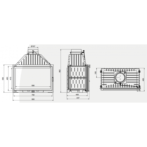 Технические характеристики:- Эффективность 19 KWЭффективность с теплогенератором 23 KWШирина 80 cmВес 179 kgКПД 76%КПД (с теплогенератором) 82%Древесины 55 cm