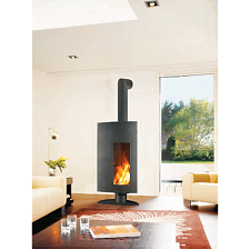 Miofocus- пристенный дровяной камин, с дымоходом, установленным с обратной стороны. Этот небольшой камин с округлыми формами и «улыбающейся» топкой подарит нежность поцелуев огня.