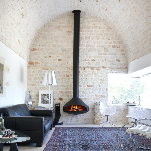 - Свободно стоящий камин прерывистого горения, с открытой топкой