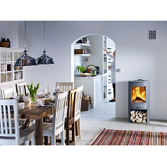 Поскольку дымоход в данном случае невозможно убрать в шахту или стену, он предстает в качестве органичного дополнения топки конструкции, и создан эффектно элегантным и эстетически привлекательным.
