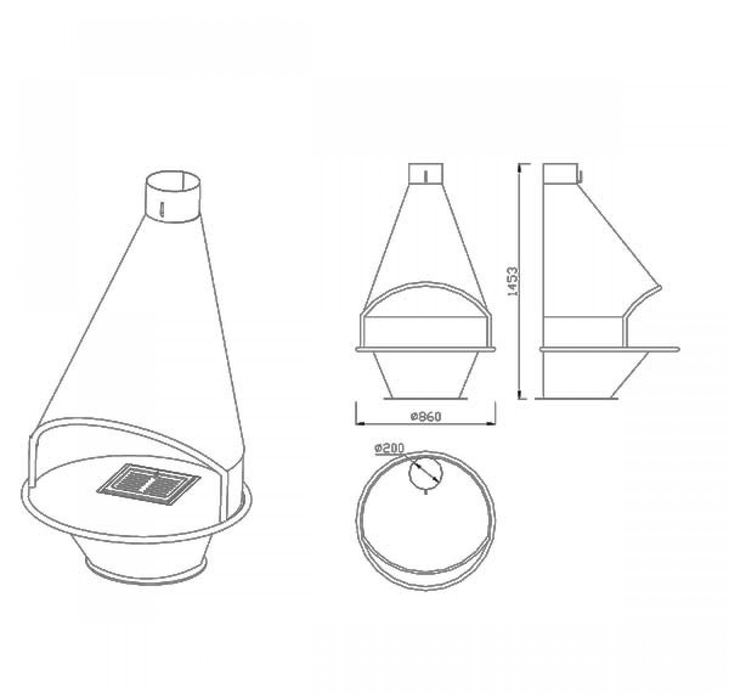 Камин изготовлен из специальной стали и отделан огнеупорной черной краской (выдерживает 650C).