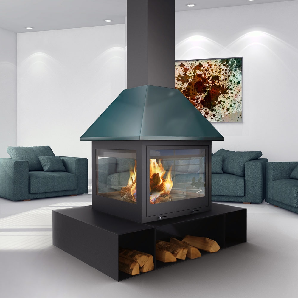 Специальный камин для больших помещений. Двойной кожух, различные варианты основания и система регулировки горения делают его одним из лучших.