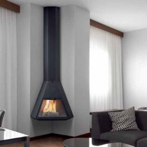 Отточенные линии и лаконичный дизайн в сочетании с высокими техническими показателями. Фронтальный металлический камин (сталь 1,5-5 мм толщиной) с конвекционной камерой. Топка футерована огнеупорным материалом (шамотом), колосниковая решётка из чугуна. Двухкорпусная дымоотводная труба со встроенной шиберной задвижкой может быть расположена слева или справа. Обогревает помещение конвекцией и теплоизлучением через жаростойкое стекло топки. Внутренняя труба в комплект не включена. Возможна версия без стекла. Опции: дополнительная труба внешнего кожуха, двойной отвод, телескопический элемент для потолка под наклоном, листовое покрытие для пола, набор для приготовления пищи на решётке
