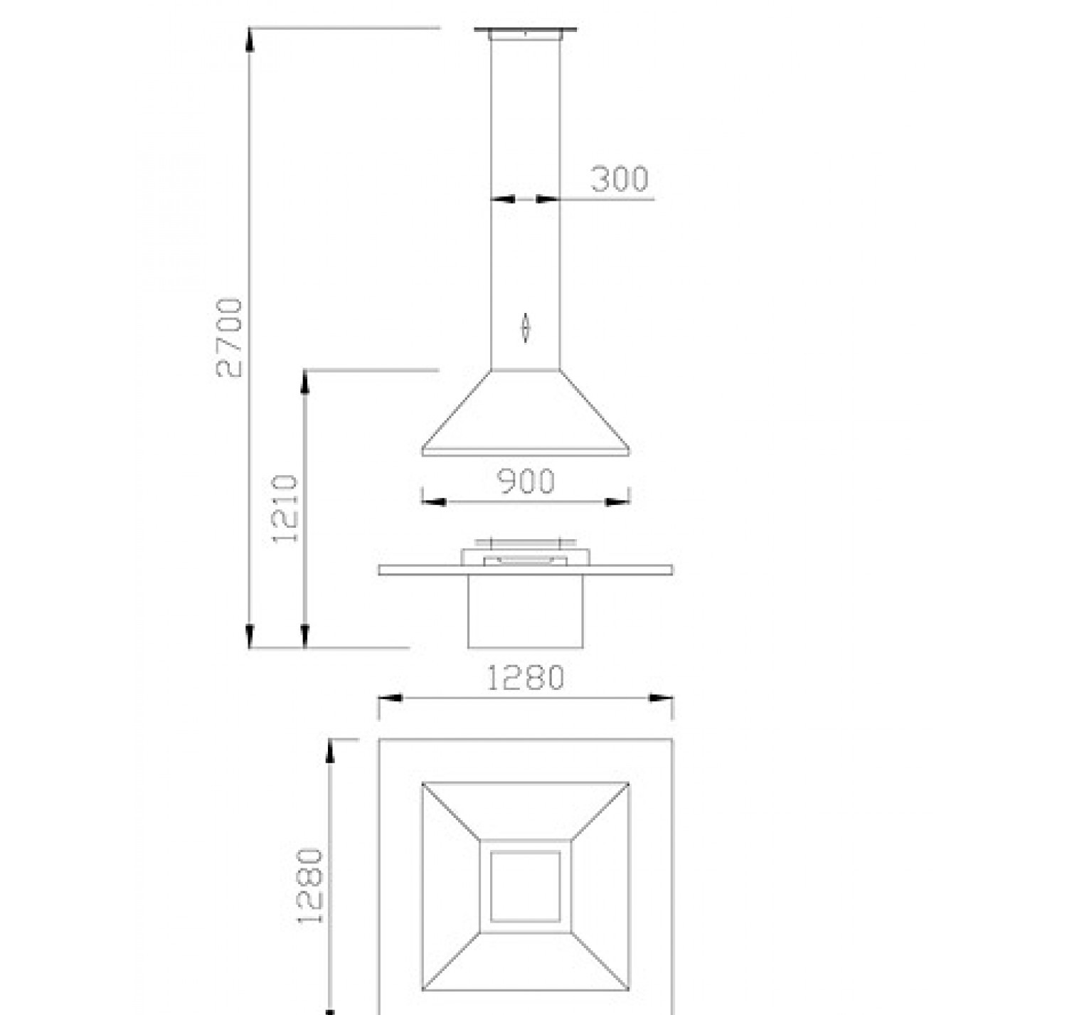 Камин Vulcano, без стекла, сталь, черный (Traforart)