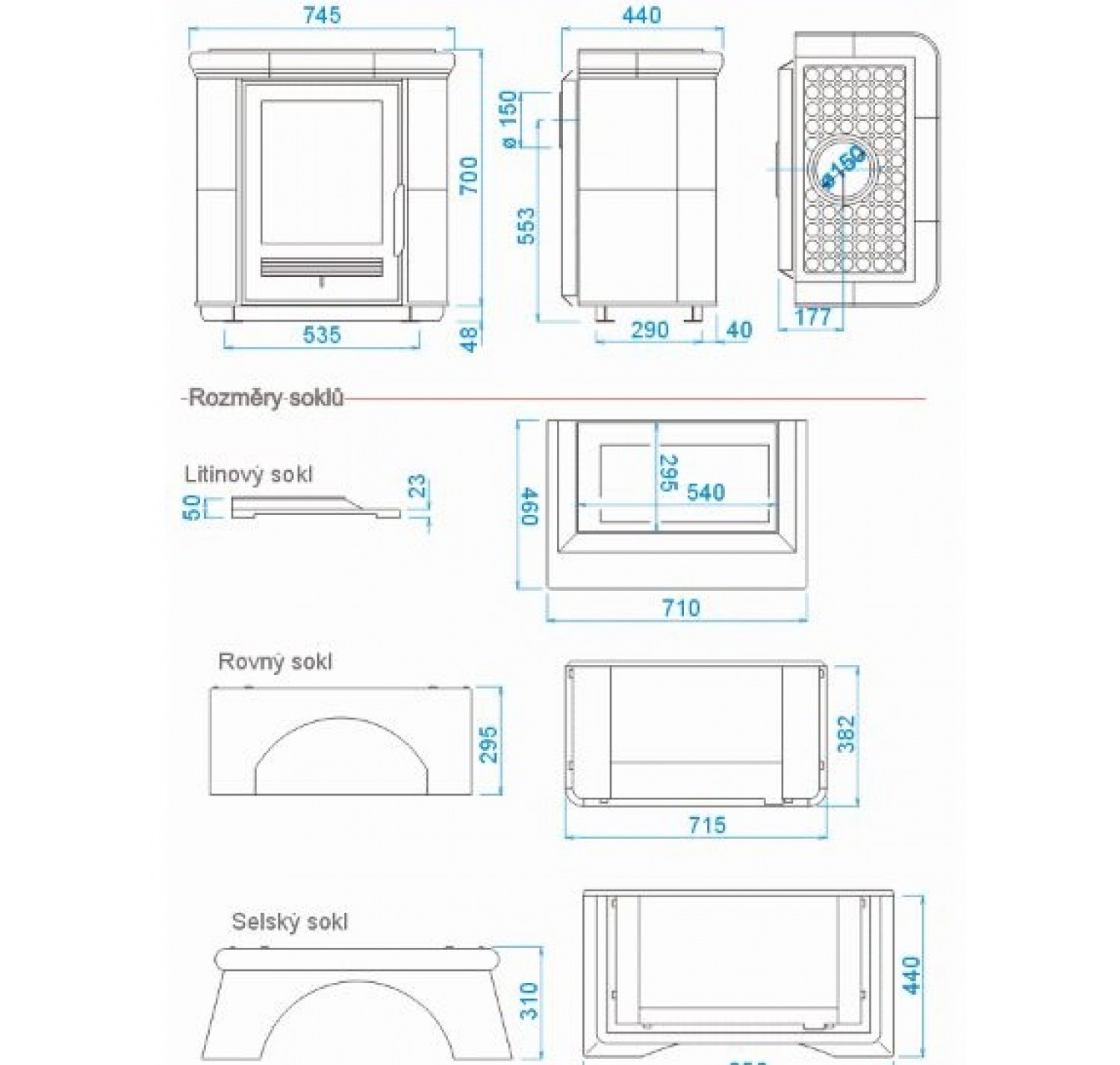 Кафельная печь Bavaria L - вставка чугун, сельский цоколь, с теплообменником